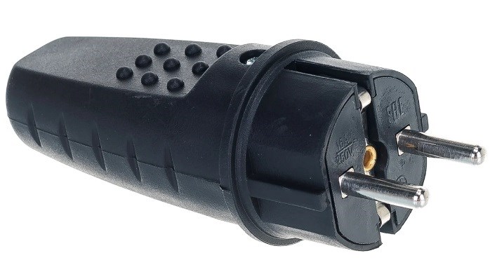 Вилка прямая UNIVersal 602227, 2Р+РЕ, 16А, 220-240В, IP44, с заземлением, каучук, черная