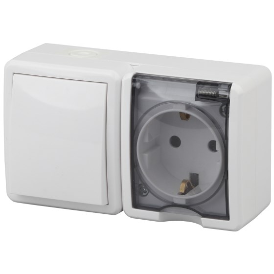 Блок комбинированный ЭРА Эксперт 11-7401-01 (выключатель + розетка), накладной, белый, с защитной крышкой