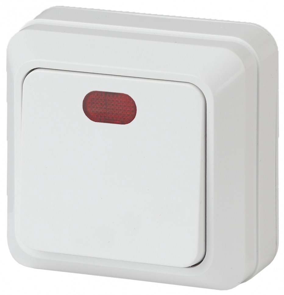 Одноклавишный выключатель с подсветкой - коммутационное устройство для включения и выключения люстр и светильников в помещениях различного назначения. Выключатель выполнен из качественного термопласта, стали и латуни, оснащён винтовыми зажимами.