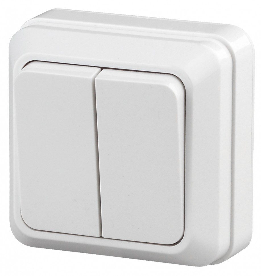 Выключатель ЭРА Intro Quadro 2-104-01, двухклавишный, накладной, белый