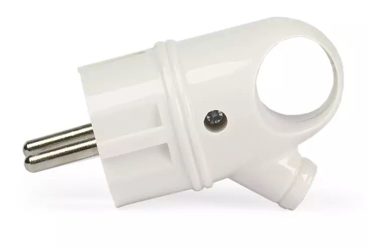 Вилка угловая SmartBuy SBE-16-P03-w, 16А, 250В, IP20, с заземлением, с ушком, белая