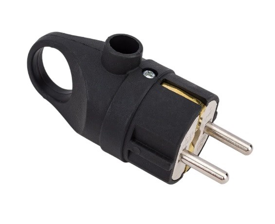Вилка угловая NE-AD 1102, 2P+PE, 16А, 220-240В, IP44, с заземлением, с кольцом, каучук, черная