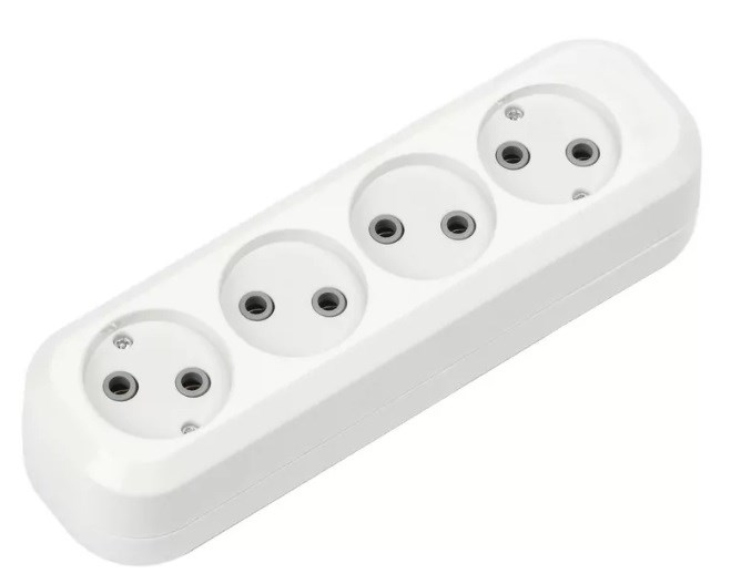 Колодка для удлинителя Smartbuy SBE-10-4-00-N, четырехместная, 10А, 250В, IP20, без заземления, АБС-пластик, белая