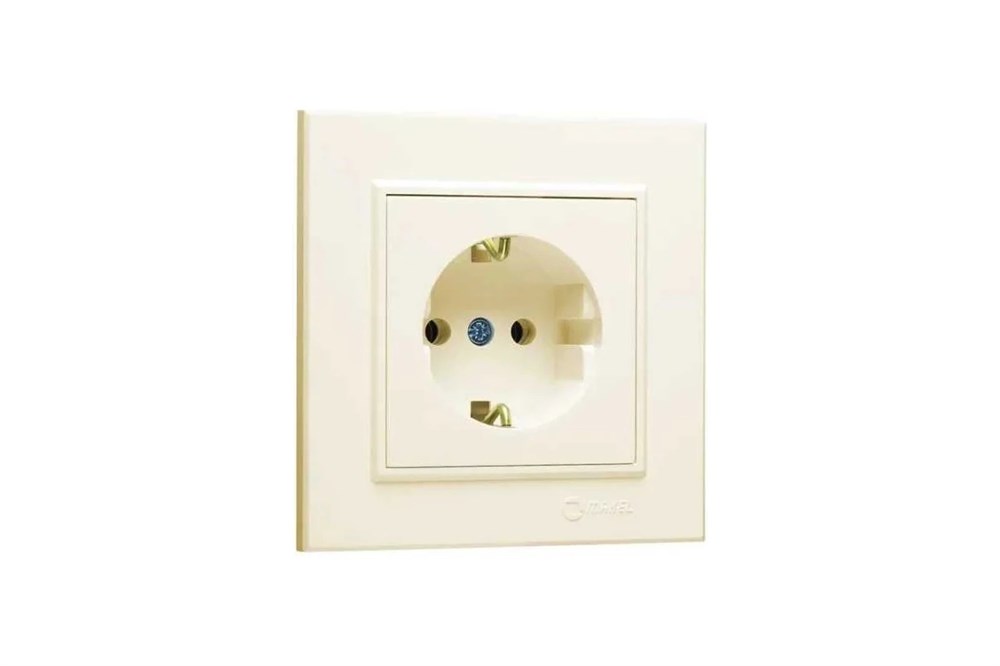 Розетка MAKEL Karea 56010008, одноместная, встраиваемая, кремовая, с заземлением