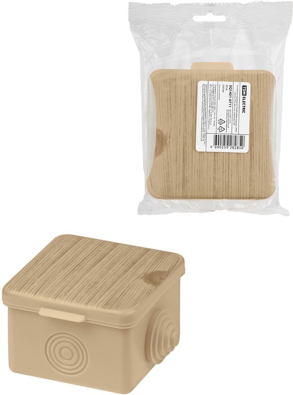 Коробка распределительная TDM SQ1401-0711, для открытой проводки, 50х65х65, крепление крышки на защелке, сосна