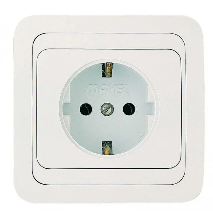 Розетка MAKEL Mimoza 12028, одноместная, встраиваемая, белая, с заземлением