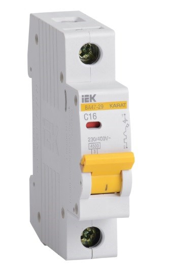 Выключатель автоматический IEK KARAT ВА 47-29, однополюсный 1Р, 16А, 4.5кА