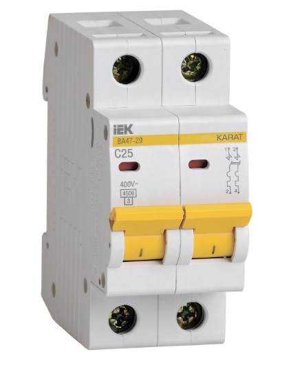 Выключатель автоматический IEK KARAT ВА 47-29, двухполюсный 2Р, 25А, 4.5кА