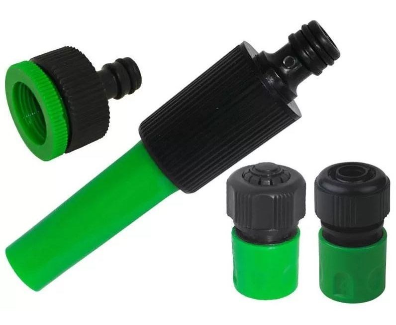 Набор для подключения шланга диаметром 1/2" состоит из распылителя, 2 быстросъемных муфт и адаптера к нему. Его используют для полива растений в саду или огороде, а также для очистки сельскохозяйственного инвентаря от загрязнений. Быстросъемные коннекторы позволяют за несколько секунд подсоединять шланг к распылителю и отсоединять от него.
