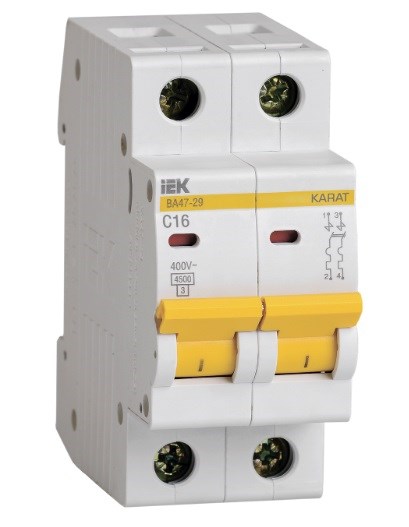 Выключатель автоматический IEK KARAT ВА 47-29, двухполюсный 2Р, 16А, 4.5кА