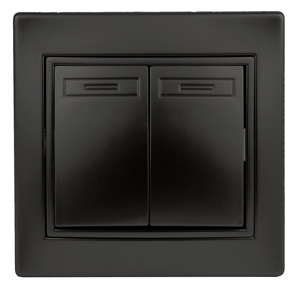 Выключатель ЭРА Intro Plano 1-104-05, двухклавишный, встраиваемый, антрацит