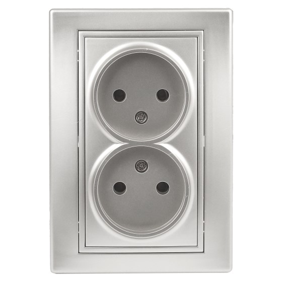 Розетка ЭРА Intro Plano 1-204-03, двухместная, встраиваемая, алюминий, без заземления