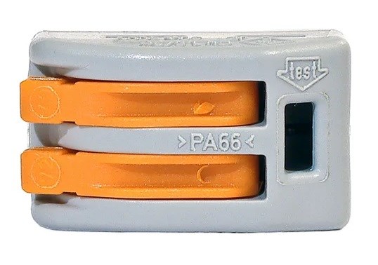 Клемма WAGO 222-412 используется для соединения проводов с одной или несколькими жилами, а также разных сечений.