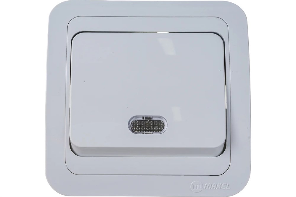 Выключатель MAKEL Mimoza 12021, одноклавишный, встраиваемый, белый с белой вставкой, с подсветкой
