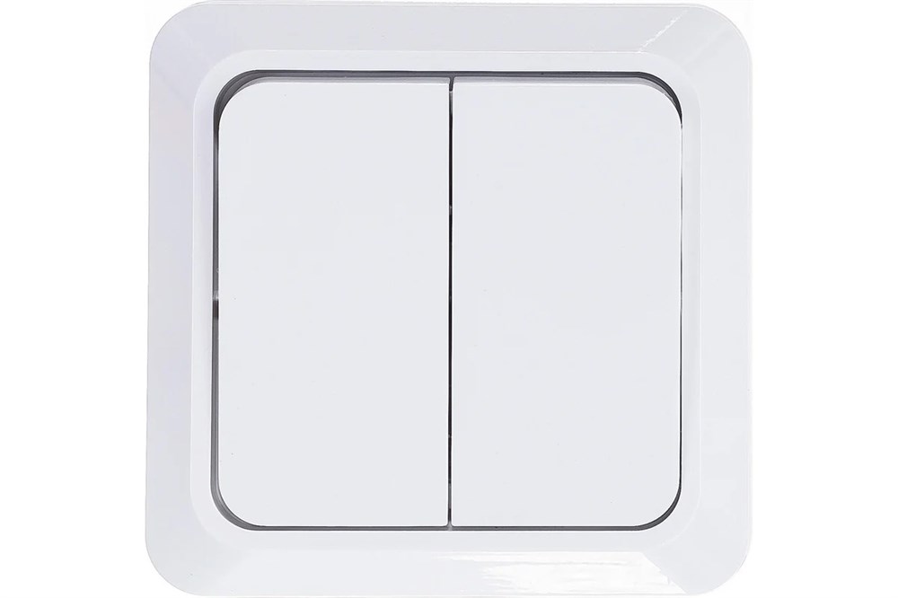 Выключатель UNIVersal Олимп О0023, двухклавишный, накладной, белый
