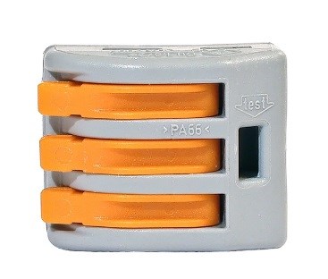 Клемма 3-проводная WAGO 222-413, 0.5-4мм2, без пасты, с рычажками