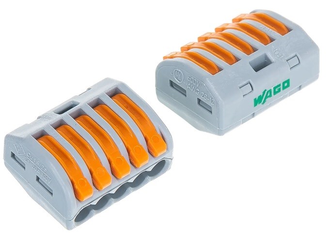 Клемма 5-проводная WAGO 222-415, 0.08-4мм2, без пасты, с рычажками