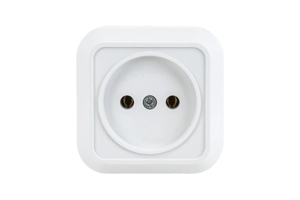 Розетка MAKEL 45102, одноместная, накладная, белая, без заземления