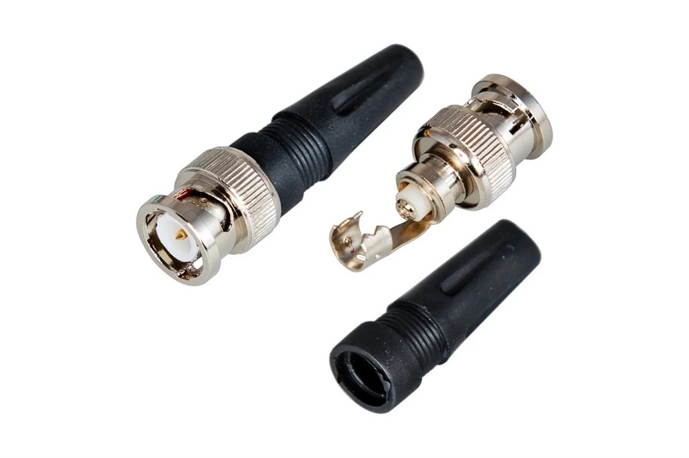 Разъем штекер BNC под винт с колпачком предназначен для подключения коаксиального кабеля c волновым сопротивлением 50 и 75 Ом, диаметром до 7 мм, к видеокамерам, видеорегистраторам, мониторам и другим радиоэлектронным устройствам. BNC-коннектор (BNC сокр. от Bayonet Neill Concelman) под винт - электрический разъем с байонетной фиксацией закрепляется на кабеле зажимом с помощью винта центрального контакта (центральная жила - под винт, оплетка - обжимается). Этот способ крепления значительно проще и быстрее, чем пайка, но его надежность и качество соединения остаются на неизменно высоком уровне. Пластиковый колпачок защищает соединения и предотвращает кабель от перегиба в месте крепления к разъему.