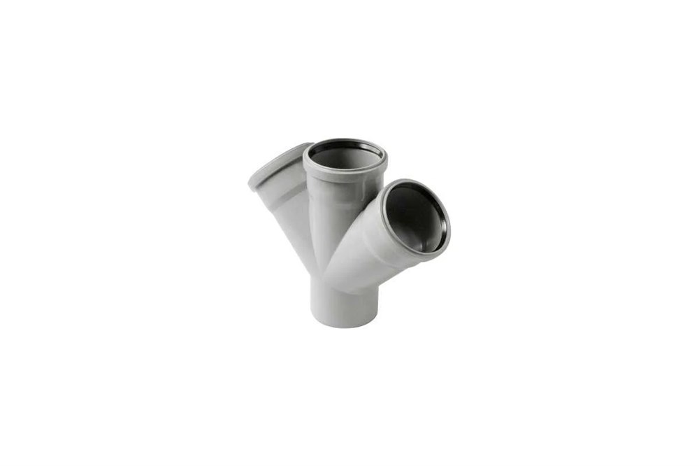 Крестовина одноплоскостная для внутренней канализации, 50/50/50, 45 градусов, полипропиленовая, серая