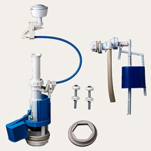 В данной модели используется наполнительная арматура универсальная боковой подводки воды, которая работает по принципу противодавления. Запирание происходит из-за разницы площадей в полости наполнения клапана водой и полости запирания не зависимо от давления сетевой воды. Принцип работы арматуры исключает возможность проверки её работоспособности продувкой воздухом. Арматура спускная с управлением донным клапаном через гибкую связь, позволяющая устанавливать её в смывные бачки разной высоты с одной регулировкой уровня воды. Наличие регулируемой трубы перелива исключает течь воды через верх бачка.