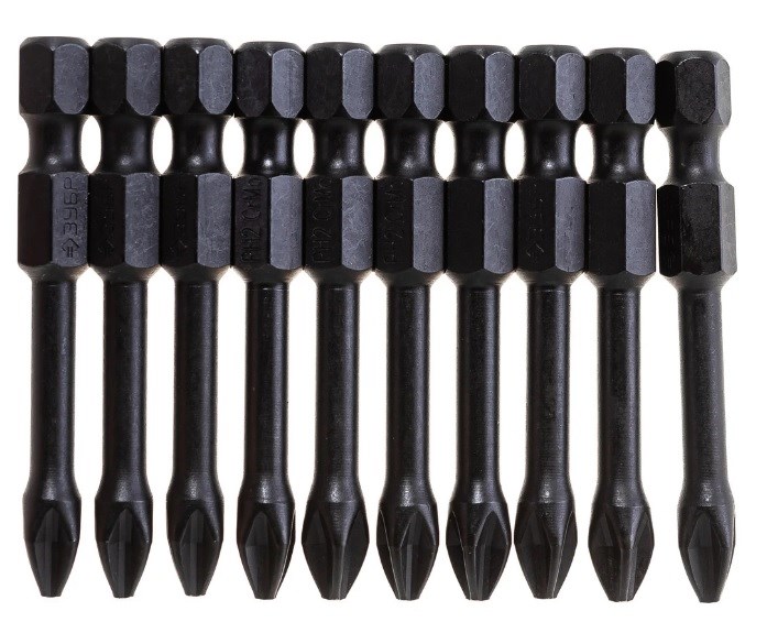 Бита ЗУБР 26021-2-50-10, РН2 50мм, ударная, в наборе 10шт, поштучно
