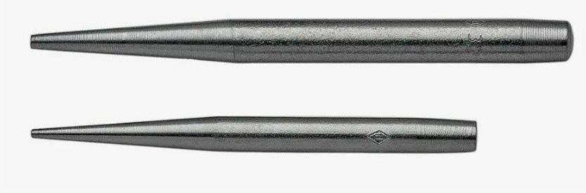 Бородок конический УСПЕХ изготовлен из прочной хромованадиевой стали, отличающейся долгим сроком службы. Представляет собой стержень с наконечником в виде усеченного конуса. Приспособление применяется для нанесения разметки или выбивания отверстий на листовых материалах. Используется в слесарной работе.