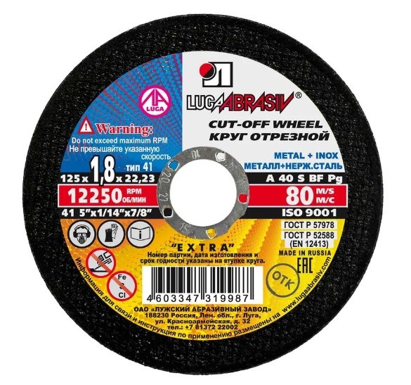 Круг отрезной Луга предназначен для ручных резчиков. Применяется для высокопроизводительной резки деталей и конструкций из различных марок стали и быстрорежущей стали. Круг особенно эффективен при резке тонкостенного профиля и листового металла.