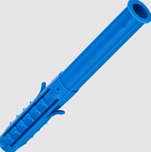 Дюбель распорный представляет собой крепежное изделие, которое применяется совместно с шурупами. Обладает плоским цилиндрическим бортиком и четырехсегментной распорной зоной. На последней зафиксированы специальные элементы — усы и шипы. Они в сочетании с продольными ребрами жесткости обеспечивают прочную фиксацию крепежа в основании и позволяют избежать проворачивания в процессе установки. Изделие характеризуется универсальностью, за счет чего подходит для монтажа в поверхности из разных полнотелых материалов: бетона, кирпича, натурального камня. Установка нейлонового дюбеля производится в заранее подготовленные отверстия. Кромка изделия не дает ему углубиться в отверстие на слишком большую глубину.