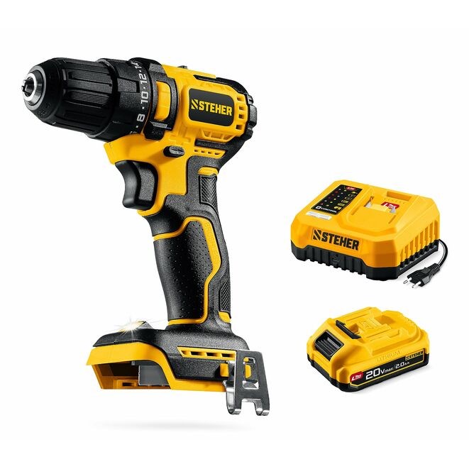 Дрель-шуруповерт аккумуляторная STEHER CB-45-21, 20В, 45Нм, 1 АКБ, 2Ач