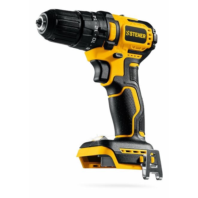Дрель-шуруповерт аккумуляторная STEHER CBS-45, ударная, 20В, 45Нм, без АКБ