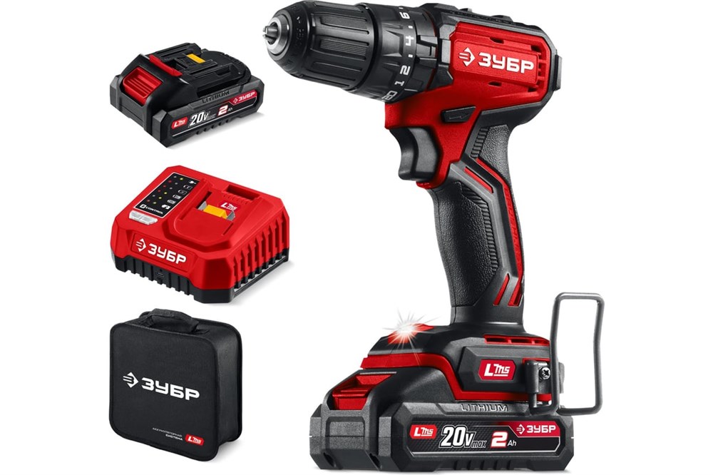 Дрель-шуруповерт аккумуляторная ЗУБР ДБУ-45-22, ударная, 20В, 45Нм, 2 АКБ, 2Ач, в сумке