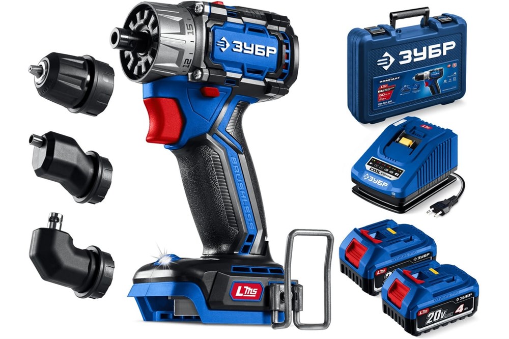 Дрель-шуруповерт аккумуляторная ЗУБР Профессионал DB-50-42-Н3 Компакт Комби №3, модульная, 20В, 50Нм, 2 АКБ, 4Ач, в кейсе