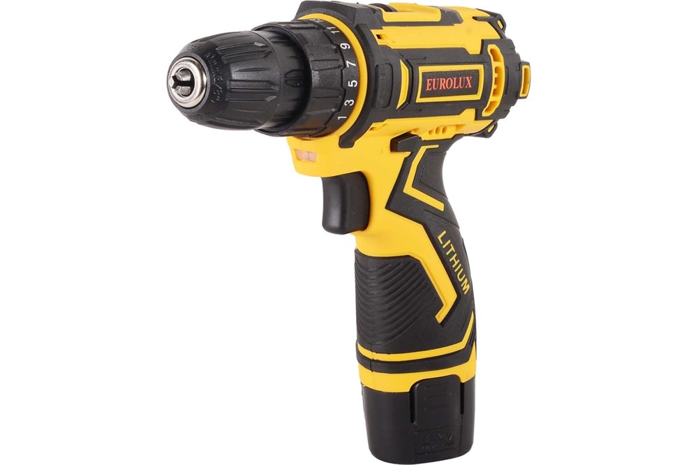 Дрель-шуруповерт EUROLUX ДА-12/2Li, аккумуляторная, 12В, 25Нм, 2АКБ, 1.5Ач, в кейсе