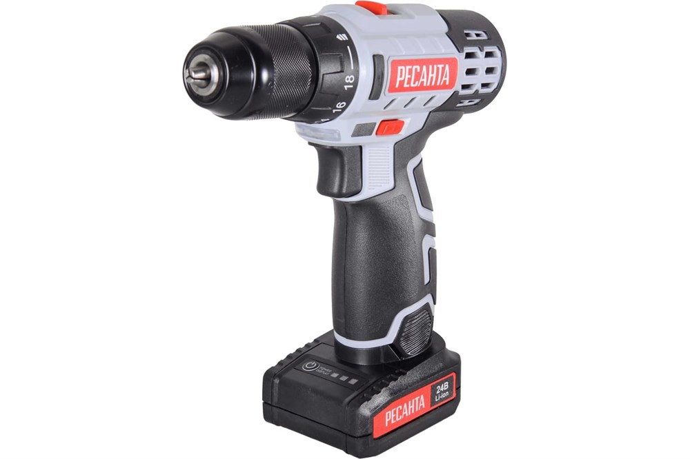 Дрель-шуруповерт РЕСАНТА ДА-24-2ЛК, аккумуляторная, 24В, 60Нм, 2АКБ, 2Ач, в кейсе
