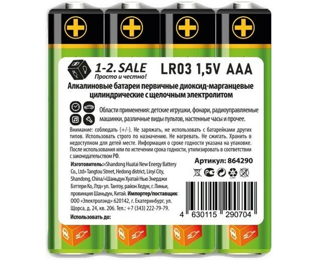Элемент питания (батарейка) 1-2.SALE LR03/286 SR4 NEW, E1M, мизинчиковый, щелочной, 1.5В, 4шт. в блистере