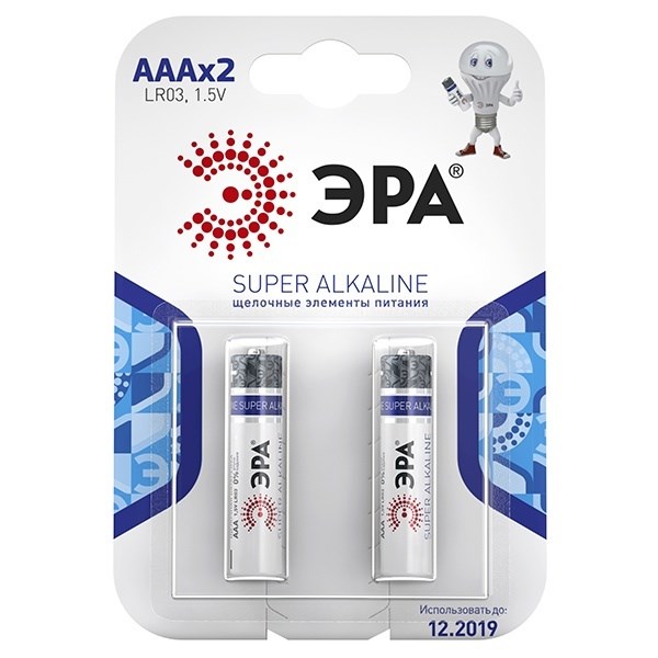 Элемент питания (батарейка) ЭРА LR03-2BL, мизинчиковый, щелочной, 1.5В, 2шт. в блистере