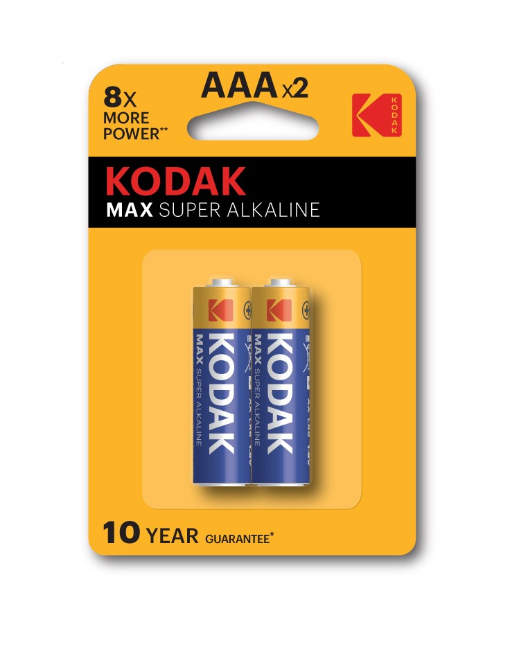 Элемент питания (батарейка) KODAK MAX SUPER Alkaline LR03-2BL, мизинчиковый, щелочной, 1.5В, 2шт. в блистере