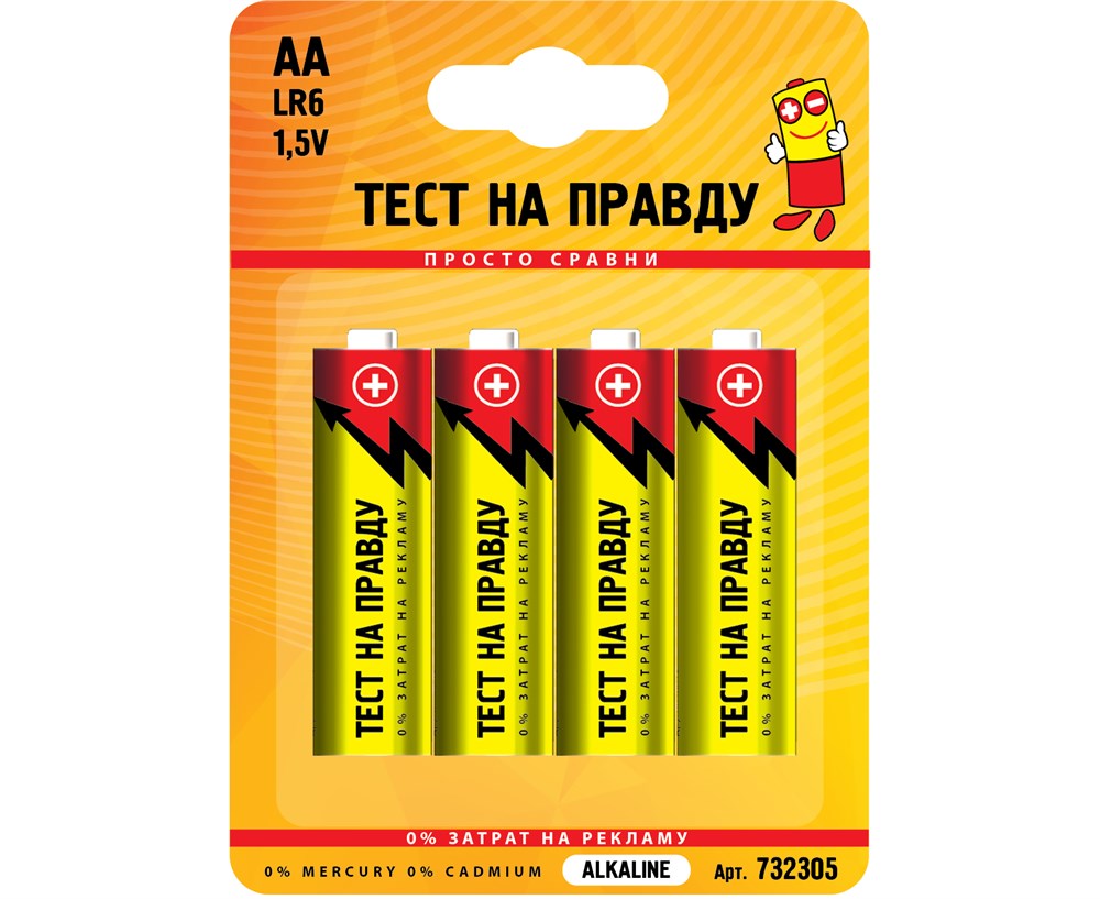 Элемент питания (батарейка) ТЕСТ НА ПРАВДУ LR06/316 BL4, пальчиковый, щелочной, 1.5В, 4шт. в блистере