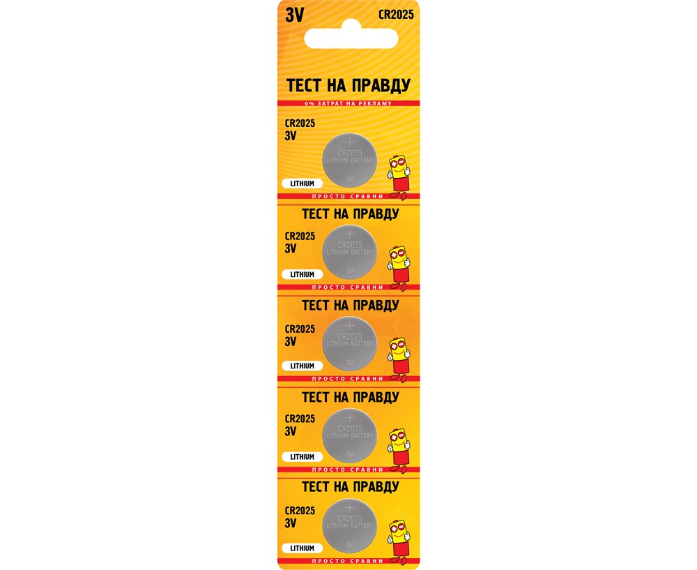 Элемент питания (батарейка) ТЕСТ НА ПРАВДУ СR 2025, таблетка, литиевый, 3В