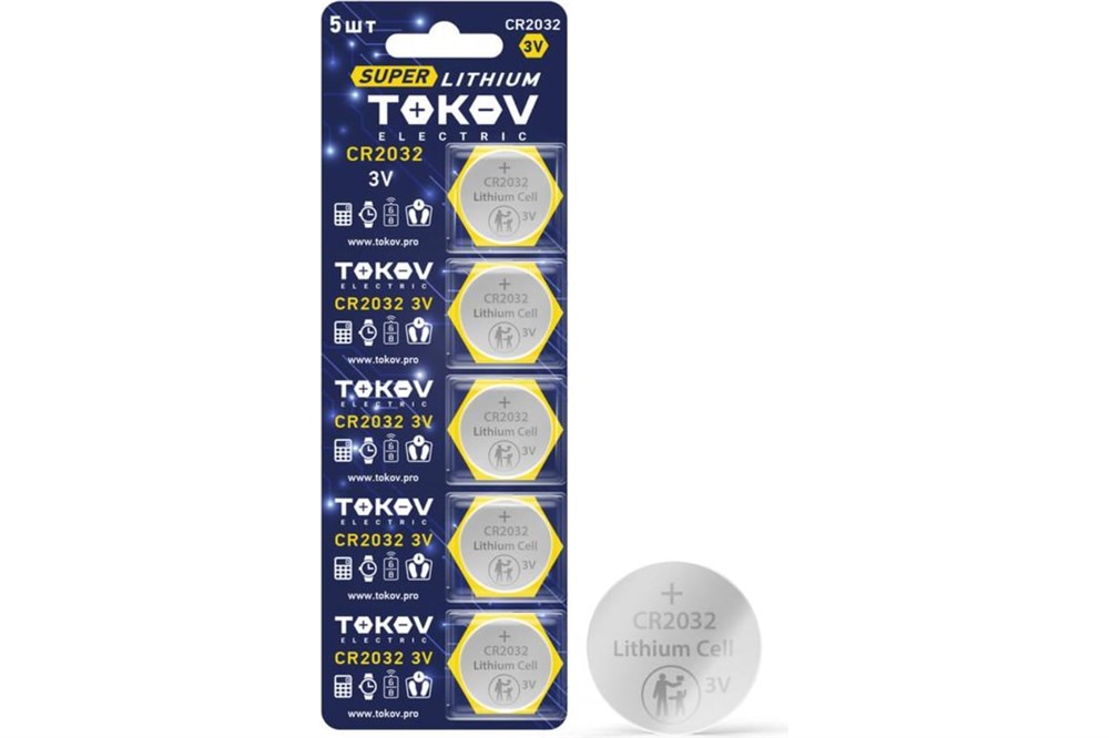 Элемент питания (батарейка) TOKOV ELECTRIC CR2032, таблетка, литиевый, 3В, поштучно