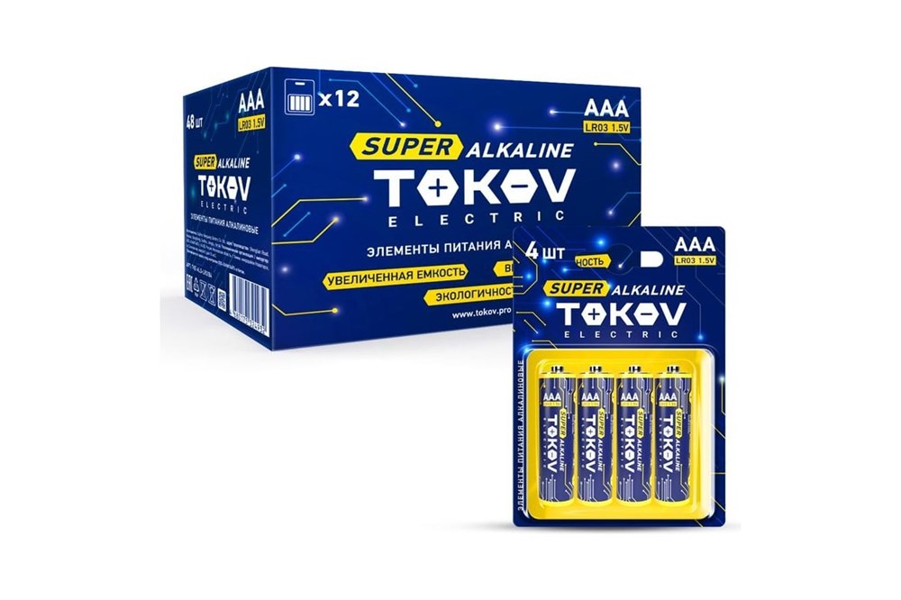 Элемент питания (батарейка) TOKOV ELECTRIC TKE-ALS-LR3/B4, мизинчиковый, щелочной, 1.5В, 4шт. в блистере