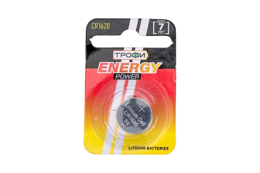 Элемент питания (батарейка) ТРОФИ CR1620-1BL, таблетка, литиевый, 3В, 1шт. в блистере