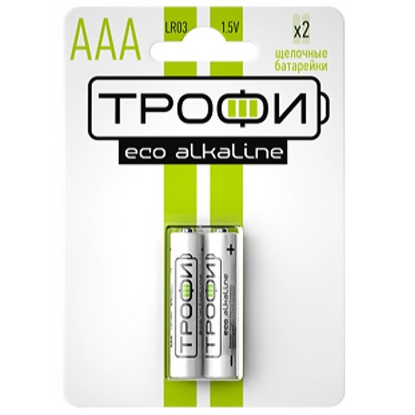 Элемент питания (батарейка) ТРОФИ ECO LR03-2BL, мизинчиковый, щелочной, 1.5В, 2шт. в блистере
