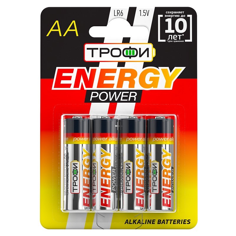 Элемент питания (батарейка) ТРОФИ Energy Power Alkaline LR06-4BL, мизинчиковый, щелочной, 1.5В,4шт. в блистере