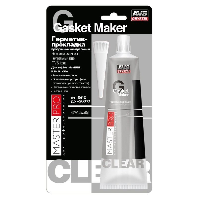 Герметик-прокладка MasterPro AVS AVK-347, 85г, автомобильный, силиконовый, нейтральный, прозрачный
