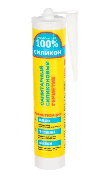 Силиконовый санитарный герметик «Ремонт на 100%» — профессиональное решение для герметизации швов в условиях повышенной влажности и экстремальных температур. Однокомпонентный состав кислотного типа содержит фунгициды, предотвращающие образование плесени и грибка, что делает его идеальным для ванных комнат, душевых кабин, бань, кухонь и других зон с агрессивными средами.