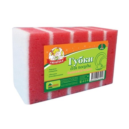 Губка для посуды Умничка Деликатная чистка MPU2056, 95x65x33мм, поролон с чистящем слоем, упаковка 5шт.