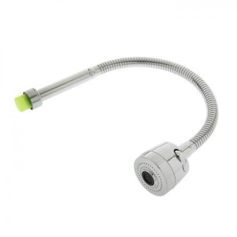 Гибкий излив для смесителя - удобная поворотная модель. Из нержавеющей стали, хромированное покрытие, пластиковый аэратор, двухрежимная лейка, элегантная форма. Излив универсальный и подходит к большинству моделей смесителей.