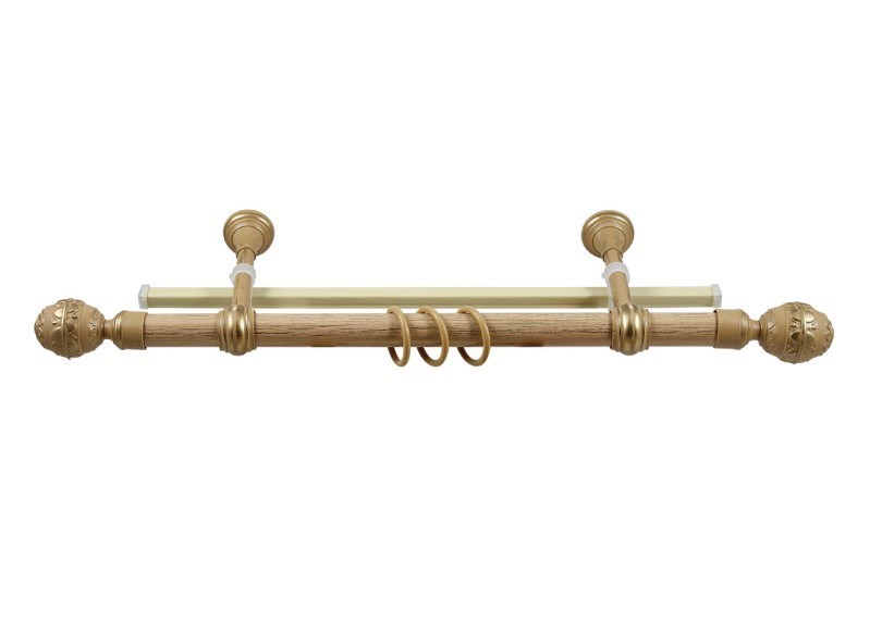 Карниз Валанс, 2-рядный, 1.6м, круглый для штор, беленый дуб/золото, металлический, с наконечниками